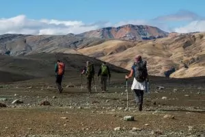 - Hiking uphill or downhill with a 10-15 lb backpack for 8-10 hours