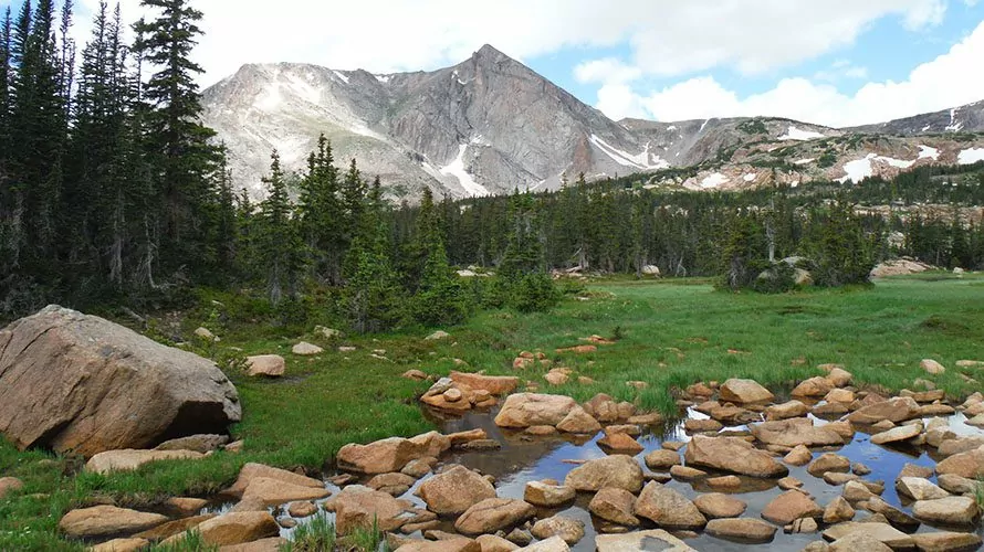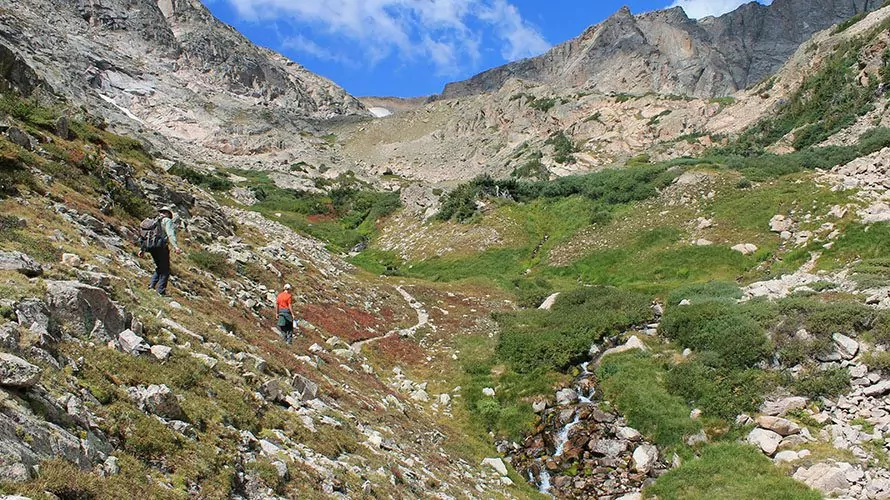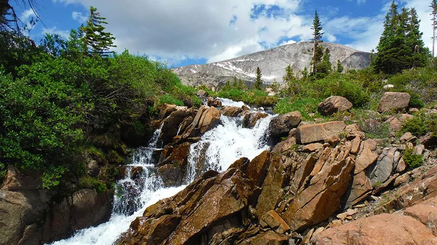 We’ll set up camp in a forest above Thunder Lake surrounded by giant peaks like Tanima Peak (12,420 ft), Chief’s Head (13,579 ft) and Mount Alice (13,310 ft). On day hiking excursions, we’ll climb into the high country above Thunder Lake, which features several beautiful waterfalls as well as signature hiking on classic Rocky Mountain ridges and peaks. The combination of waterfalls, alpine lakes and stunning scenery make these truly unforgettable days in the high country! Come experience an unforgettable Colorado backpacking adventure!