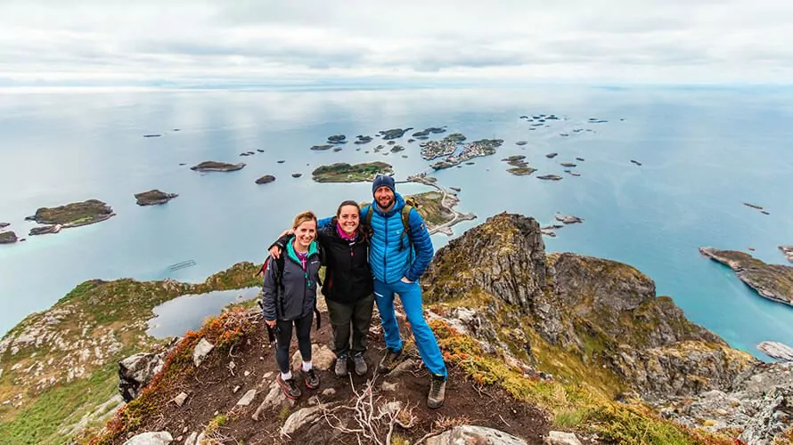 One perk to our lodge-based trip is that you’ll have a cozy place to relax, refresh, and rejuvenate each night. You’ll feel well-rested and better able to absorb all the sights, sounds, and smells of immersing yourself in a new place. We work with a variety of lodges along this journey to ensure you get the most out of your trip. The first two nights of the lodge-based Lofoten Island trip will be spent at Nyvagar Rorbuhotell in Bodo, Norway. You’ll wake up to the call of adventure by the sounds and smells of the ocean right out your front door! This lodge is located directly on the sea and provides stunning ocean views. The second lodge we’ll stay at is Lofoten Links near Kleppstadheia Mountain. The highlights of this lodge include jaw-dropping views of the midnight sun and northern lights over the ocean, as its cabins are facing north for your viewing pleasure. For one night, Solsiden Brygge puts a modern twist on the classic charm of other lodges. This lodge is a great place to relax, complete with a hot tub and stunning views! Last, guests will stay at Eliassen Rorbuer. End your trip immersed in history and charm in these renovated fisherman cabins at this famous Lofoten Island lodge. Located on a small island in a small village, this lodge will take you back in time! See Lofoten Islands Lodge-based Tour Best hikes in NorwayMulti-day Norway HikesHut to hut trekking in Norway is very common, with incredible hut systems set up throughout the country. Well-marked trails guide the way through the Norwegian mountains and cozy cabins appear to shelter you from the weather. Norwegian social rules of not talking to strangers disappear the second feet hit the trails. Jotunheimen, named after the land of the giants from Norsk Mythology, is a premier hiking destination in Norway. This alpine landscape with turquoise lakes, cascading waterfalls, fields of wildflowers, and towering peaks is home to 250 summits above 1,900 meters. The most prominent are Galdhøpiggen (2,469 meters) and Glittertind (2,465 meters), the two highest mountains in Northern Europe. Norway Day HikesThere are premier day hiking destinations all over Norway. It would take years to explore all the hidden gems the country has to offer. However, our recommendation for the most stunning day hike destination in Norway is Lofoten. Lofoten is famous for its dramatic mountains shooting straight out of the ocean. At 68 degrees North, Lofoten sits above the arctic circle to offer 24-hour sun during the summer months. Although its latitude suggests it would be cold, the gulf stream provides warm temperatures to Norway as a whole, keeping the temperatures moderate instead of glacial. Lofoten has an old Norwegian fishing culture, and once you visit you can see why. Famous for its Cod, Lofoten has survived the centuries through fishing. In fact, one of the oldest Viking settlements to date is located in Lofoten. The trails in Lofoten are steep and often muddy and slick, but the summit view is well worth the effort.