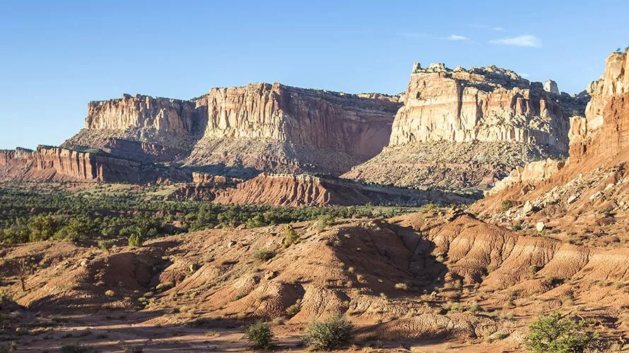 Since Capitol Reef National Park and Paria Canyon/Buckskin Gulch are both further South, the primary city for departure is St. George, UT. St, George has an airport and is within a 2-hour drive from the Las Vegas International Airport. You can rent a car to get to St. George or take one of the many daily shuttles that run to and from St. George to the Las Vegas airport.