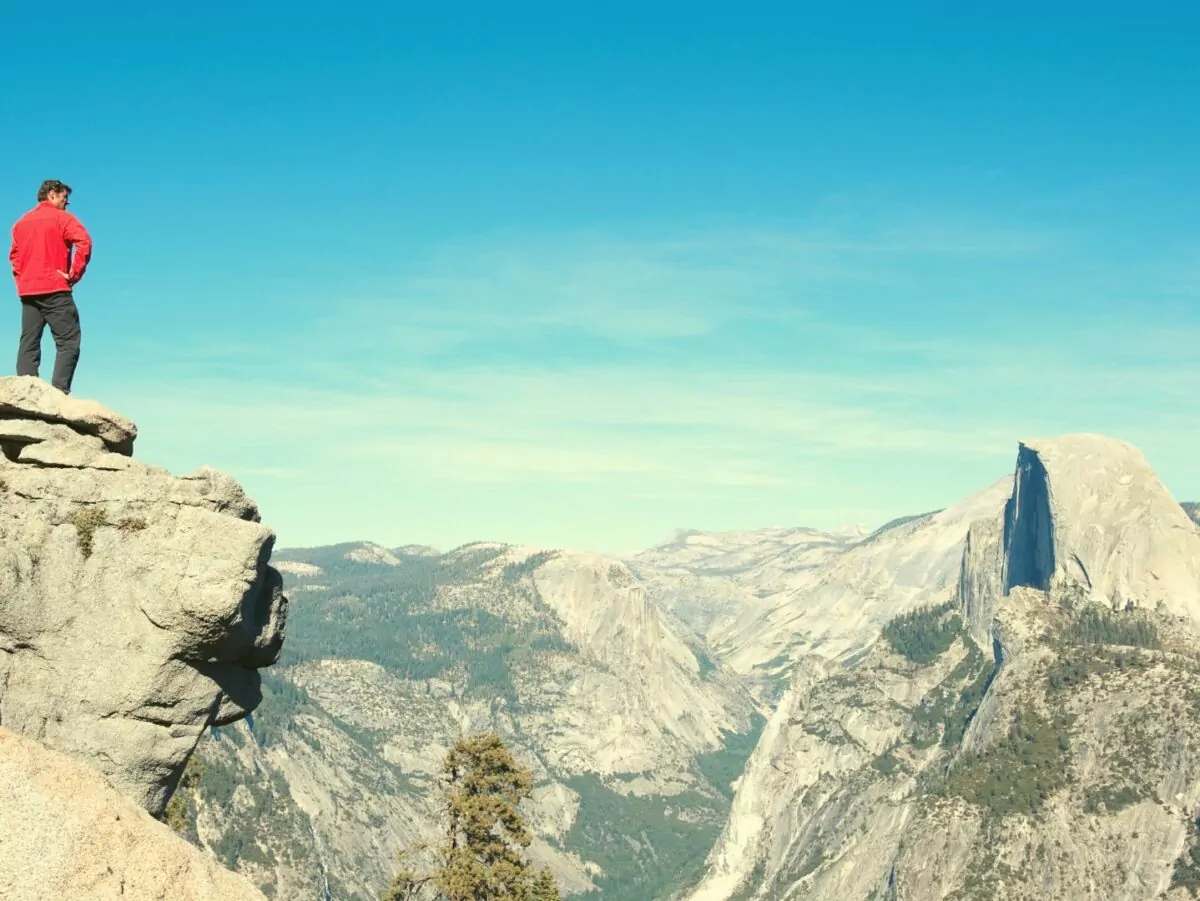Hiker looks at half dome, one of the hardest hikes in the US