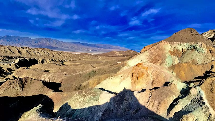 This multi-day Death Valley hiking trip begins with a morning pick up from the Tuscany Inn and Suites in Las Vegas, Nevada. We’ll depart Vegas and embark across the fabled Mojave Desert’s basin-and-range landscape. Upon entering Death Valley National Park, we will be treated to morning views of the Badlands: jagged hills dazzlingly colored by volcanic metals. At the edge of the Badlands, we will walk to the top of Zabriske Point where we’ll first gaze upon Death Valley and the towering Panamint Mountains.