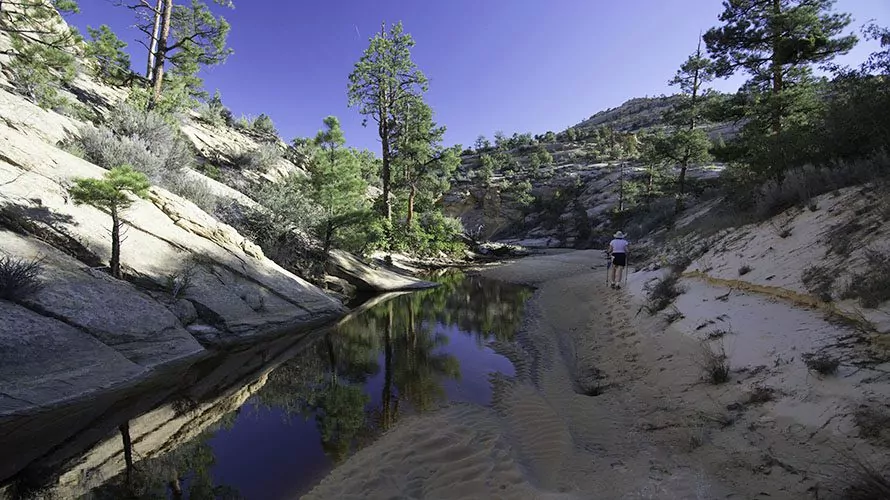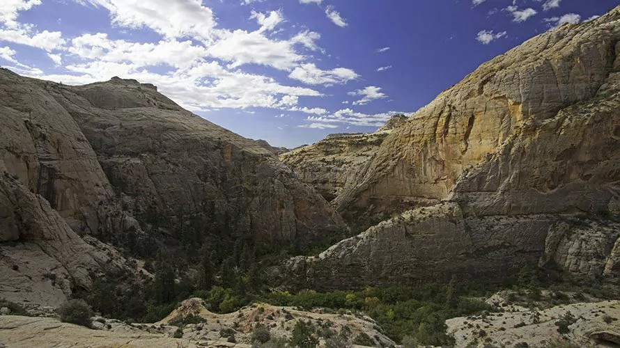 Each canyon along the Boulder Mail trail has a unique and interesting character. Sand Creek is a high elevation drainage that seems lost in time with the massive feature of Slickrock Saddle rising high above in the distance. Death Hollow is a deep, wet canyon full of water and a lush riparian environment. Mamie Creek is a large drainage of Navajo Sandstone featuring one of the most interesting Natural Bridges in the state of Utah as well as deep water pockets and excellent swimming holes!