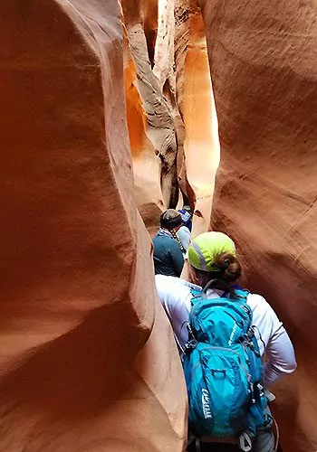 This trip follows a mix of well-maintained trails and more rugged terrain. It includes mostly moderate hiking distances and elevation gains/losses. The most rugged parts of the tour are hiking on slippery river rocks in the Zion Narrows and the slot canyons of Escalante. There is occasional heights exposure where drop-offs are 2-3 feet from the trail. Finally, the slot canyons can require scrambling and negotiating narrow spaces.