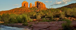 We start this Arizona hiking tour with an amazing day hike in Sedona. We begin near two of Sedona’s most prominent and beautiful landmarks, Courthouse Butte and Bell Rock, and quickly climb several hundred feet into layered shelves of red rock sandstone. We’ll stop to appreciate and learn about all the different types and uses of desert plants in the area. Half-way into our hike, we’ll reach Cathedral Rock, a stunning, nearly 1,000 foot tall sandstone monolith.