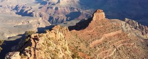 Walking in the footsteps of prehistoric Native Americans, we follow an ancient trail through the Bright Angel Fault. Today’s trail offers a meandering descent into the Grand Canyon and is the most accessible trail that goes far below the rim. There are two potential turn-around points which can make the hike 3 miles or 6 miles round trip. This is a great trail to get down into the Grand Canyon and has great amenities like water, bathrooms and shade available intermittently.