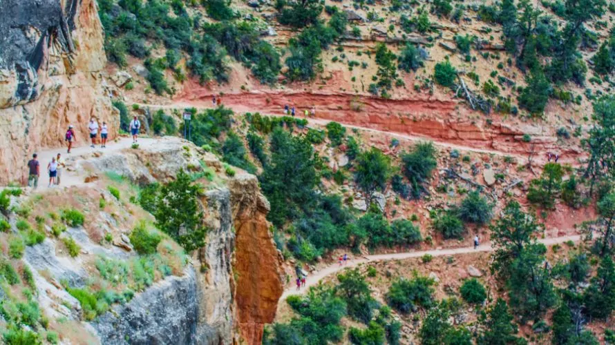 Walking in the footsteps of prehistoric Native Americans, we follow an ancient trail through the Bright Angel Fault. Today’s trail offers a meandering descent into the Grand Canyon and is the most accessible trail that goes far below the rim. There are two potential turn-around points which can make the hike 3 miles or 6 miles round trip. This is a great trail to get down into the Grand Canyon and has great amenities like water, bathrooms and shade available intermittently.