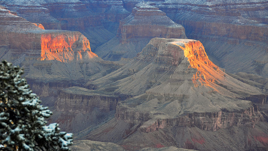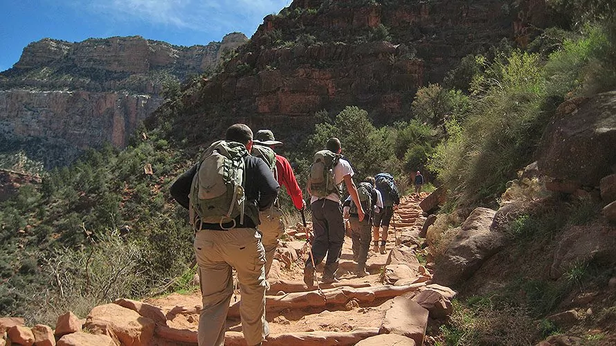 Walking in the footsteps of prehistoric Native Americans, we follow this ancient trail through the Bright Angel Fault. Bright Angel Trail offers a meandering descent into the Grand Canyon and is the easiest trail that goes far below the rim. There are two turn-around points which can make the hike 3 miles or 6 miles round trip. Both options are fantastic choices for families and people who want to push themselves into the Grand Canyon but would like water, bathrooms and shade to be available intermittently.