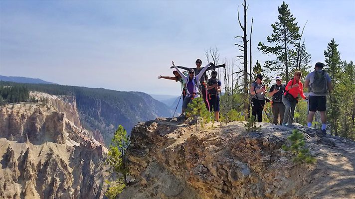 Our Grand Canyon of the Yellowstone hike combines one of the Park’s most spectacular attractions with a serene journey through forests, meadows, lakes, and mud pots. We will start our day by enjoying Artist Point, one of the most phenomenal waterfall views in North America. Then we set off on a trail with more awe-inspiring views of this uniquely colored canyon. Our solitude will sharply increase as our route continues through a fragrant forest that opens up to picturesque meadows and lakes laden with lily pads. We enter yet another life zone when we reach a backcountry geyser basin. Here we enjoy the rare pleasure of viewing mud pots and fumaroles without the boardwalks and crowds. As always, we will find a pleasant spot to sit and fill up on a delicious picnic lunch prepared by your guide. This trail system offers the flexibility to make this hike as short as 3.5 miles or as long as 8 miles with a couple variations falling between those lengths. All options will offer the highlights. Let your guide know what your goals are for the day and your ideal mileage and they will pick the best route for you.