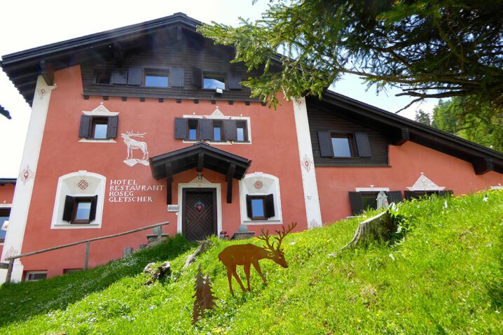 This hotel is a great stop over for our groups in a stunning Alpine setting; located conveniently just off the UNESCO World Heritage Bernina train route. This accommodation gathers mountain travelers of all types. Hikers, bikers, mountaineers, climbers and sightseers all come here and whether sitting in one of 3 cozy parlors, the restaurant or out on the sun terrace, stories of mountain travel can be heard. This is a fantastic place to spend a night perched right near the foot of the Morteratsch glacier with sweeping mountain views surrounding you.