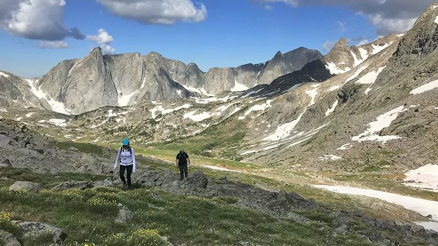 Today’s hike takes us onto the spine of the Continental Divide for one of the best views in the Rocky Mountains: a look at Cirque of the Towers from Texas Pass! We’ll get a relatively early start to make the most of our day, which is an unforgettable one. We’ll hike directly up the Divide to Texas Lake, a beautiful high mountain lake tucked beneath massive granite peaks. From the lake we’ll climb up to Texas Pass for an unparalleled view down the east side of the Divide and the Cirque of the Towers. Glaciers, soaring peaks, alpine lakes, and endless granite walls combine to make this one of the most picture-worthy views in America, so be sure and remember your camera!
