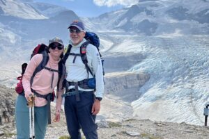Though our mileage and elevation gain are higher today, we have the luxury of tackling today as a day hike as we can leave most of our gear at our campsite since we’ll return here tonight. Our hike to Snowbird Pass will nevertheless be challenging and quite spectacular. The trail starts near Robson Glacier and offers close-up views of the glacier’s blue ice. Our route ascends through alpine meadows filled with wildflowers in the summer. Marmots and mountain goats are no stranger to this trail so keep your eyes peeled. Upon reaching Snowbird pass at 8,920 ft./2,720 m., we’ll be rewarded with expansive views of the Rearguard Glacier and Rearguard Mountain. The return hike is equally impressive with views of Mount Robson and Robson Glacier.