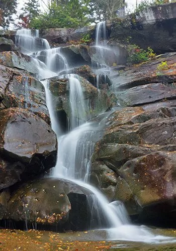 The first part of this day hike will travel along a wide forest service road. The second part heads along a very rocky and steep trail to the waterfall. This hike requires good balance and sure footing and technique going up and back down.