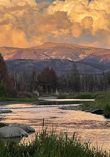 After leisurely breakfast we will make our way to our Trailhead for a day of wildlife viewing and waterfall exploration. The trail skirts the edges of a wetland meadow, where sitings of moose and deer are common. The trail is very level for the first 2 miles as we hike along the creek. We will break for lunch and listen to the rapid water flowing to the headwaters of the Colorado River. Continuing further down the trail will bring more breathtaking views of mountain summits. With a full day of hiking, we will head back the way we came to our camp.
