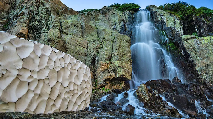 This hike is a very steep out and back hike on well-maintained trails. The final section to Sky Pond necessitates scrambling up boulders using hands and feet. Early season, June – Mid July can require use of micro spikes to access Sky Pond.