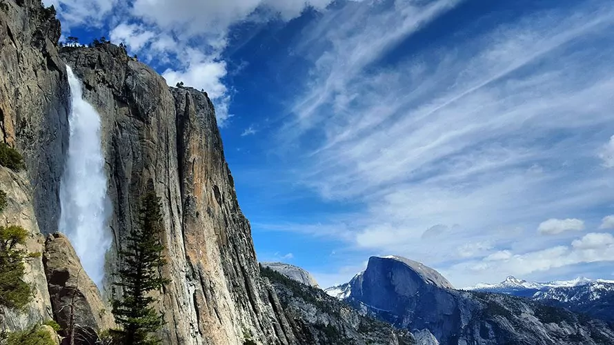 This trip follows well maintained trails. Some concerns include loose dirt, large stepping stones and tree roots. The top of Vernal/Nevada falls has exposed vertical drops with safety railings in place.