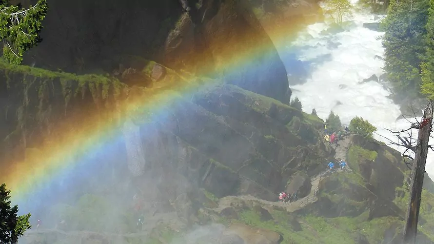 This is the absolute must-do hike in Yosemite. The Incredible views of two of Yosemite National Park’s most spectacular cascades are most popular in spring and summer but are also worth visiting in autumn for the brilliant fall foliage. Beginning at Happy Isles in the eastern end of Yosemite Valley, our trail climbs above the cataracts and rapids of the Merced River to a bridge over the river with excellent views of 317 ft. tall Vernal Fall. The next half mile is where the Mist Trail earns its name. Steep and slick, the trail ascends a virtual granite stairway through the thundering mist of Vernal Fall. In spring and early summer rain gear is recommended. Once above the fall, the crowds thin out and the trail dries out as it continues past beautiful Emerald Pool and the Silver Apron to a final steep climb to the top of Nevada Fall, the taller of the two at 594 ft. From this point, we can backtrack to the trailhead or take the John Muir Trail back for a drier and less crowded return.