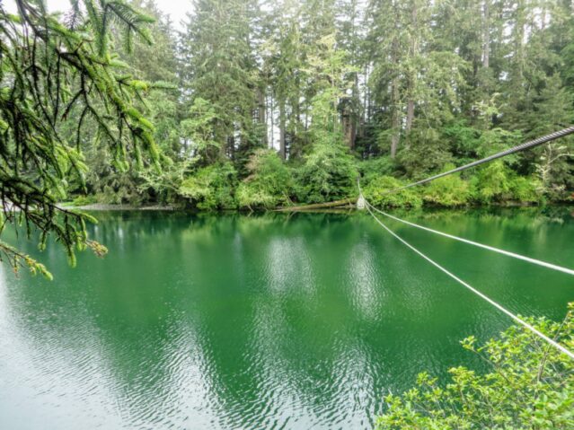 This trip though mostly low in daily elevation changes and traveling moderate distances is considered extremely difficult. Much of the trip crosses steep wet technical terrain through a rugged and remote coastal rainforest wilderness with heavy backpack weights. There is a day with 10+ miles hiked and sections with extreme heights exposure due to bridges, cable cars and ladders being needed to traverse many parts of this route. All these factors combined is why this trip is given a Level 5 difficulty rating.