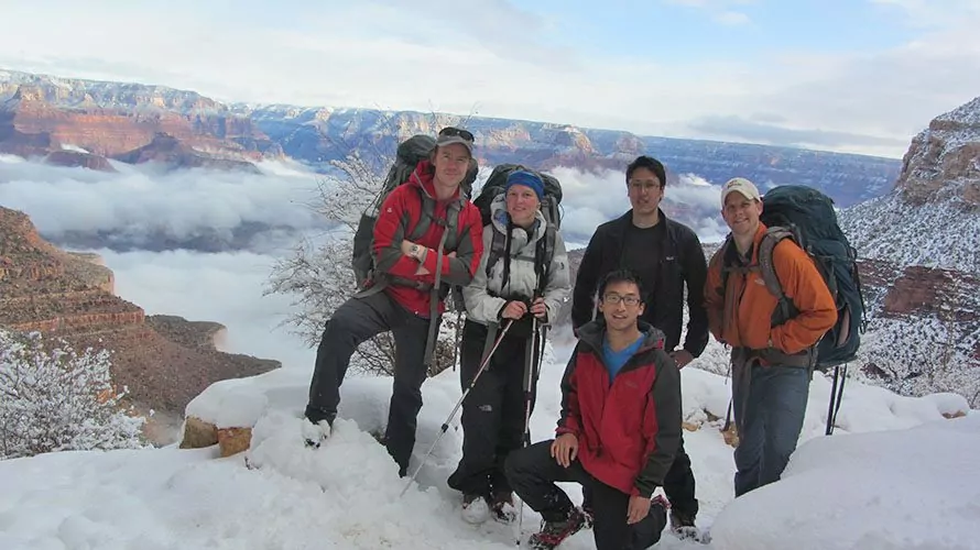 This trip has two components that determine the difficulty: 1) hiking with full backpacks on good, maintained trails with moderate distances and elevation changes; and 2) a 14-mile roundtrip day hike to the North Rim with light packs and 4200 feet of elevation gain/loss. The trails can also be icy or snowy in places, which increases the ruggedness.