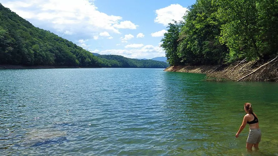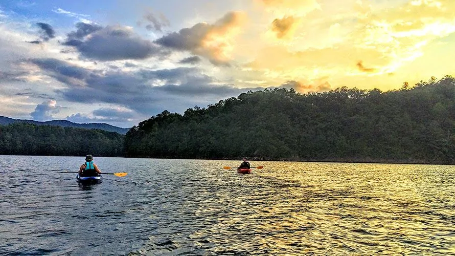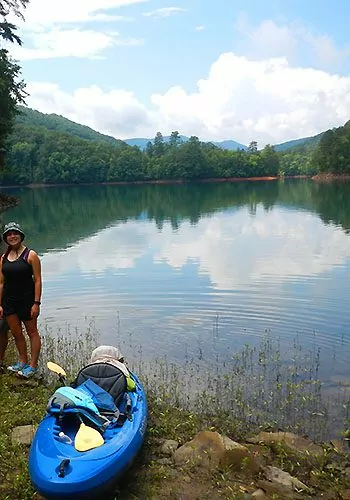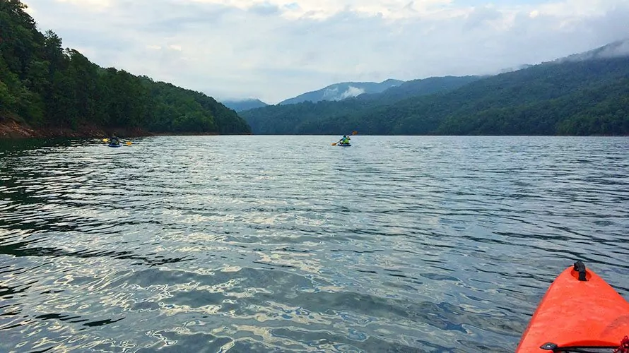 Our Great Smoky Mountains Fontana Lake kayaking, hiking, and camping adventure combines multiple sports to create one unforgettable trip. Fontana Lake is a massive, crystal clear body of water surrounded by lush forests, tall peaks and rushing mountain creeks in Great Smoky Mountains National Park. By combining days of kayaking on this beautiful lake and hiking to one of the Park’s best views, we maximize our time in this amazing place.