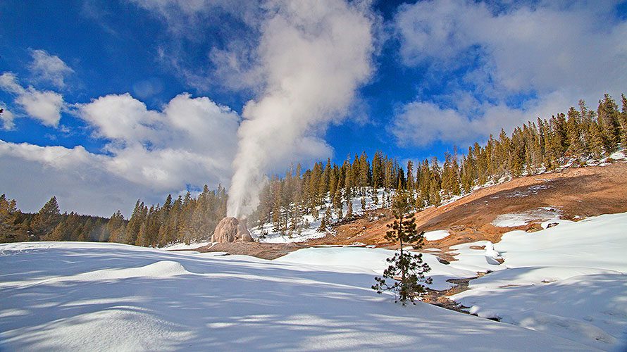 The difficulties of this trip come from the typically harsh winter conditions of the area. The majority of the hikes are on packed trails and boardwalks (when in thermal areas), but the route to Lone Star Geyser can involve some difficult trail breaking depending on recent snowfall.