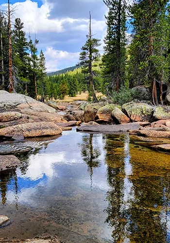 We set up our base camp at higher elevations than Yosemite Valley, at a private campground just outside of Yosemite National Park boundary with great access to the Valley and the high country. Each day after a hearty breakfast we head into the park for unforgettable days of hiking on a diversity of hand-picked trails. At night we return to our camp for fantastic meals, relaxation, and showers.