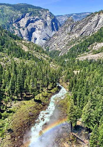 This trip is along well maintained trails. Some concerns include loose dirt, large stepping stones and tree roots. There are 3,000ft vertical drops on the top of Vernal and Nevada falls. These are protected by railings and can be avoided if guests are afraid of heights.