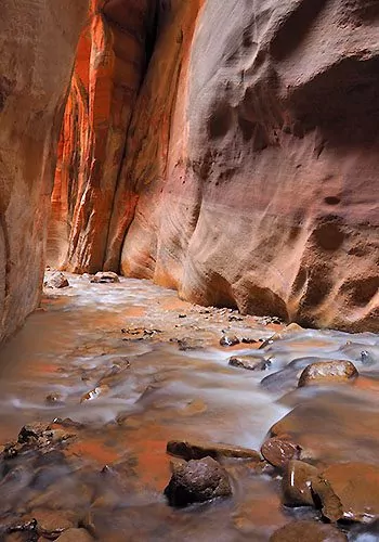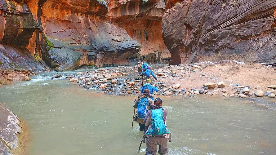 - Maintaining balance and footing on moderately rugged terrain, especially slippery river rocks in the Zion Narrows