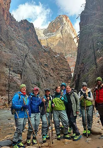 Overall this trip follows well-maintained trails and includes mostly easy-moderate hiking distances and elevation gains/losses. The most rugged part of the tour is hiking on slippery river rocks in the Zion Narrows. There is occasional heights exposure where drop-offs are 2-3 feet from the trail.